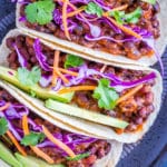 Late in my pregnancy, I’ve been craving (vegetarian) sloppy joes. The last time I made them, I added some black beans to the BBQ sauce and threw them in some tacos. It’s been one of my best ideas lately! 🙂 I also love that this recipe only takes 20 minutes because, these days, it’s getting harder and harder to stand in the kitchen for any longer than that.