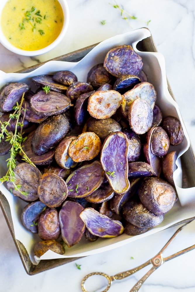 Roasted Purple Potatoes with Lemon, Dijon & Thyme Dressing