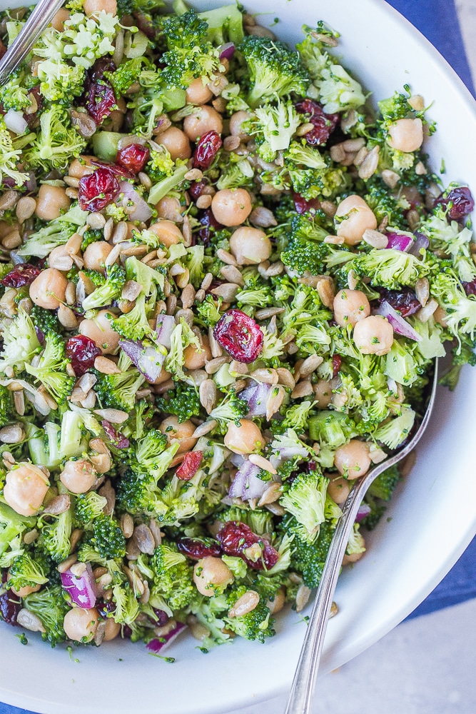 This Crunchy Broccoli Salad with Maple Mustard Dressing is perfect for a holiday side dish that doesn’t require any cooking. The dressing and cranberries make this salad sweet and tangy, while the broccoli, chickpeas, and greens add nutrients and fiber. It’s a great salad to serve for an easy and healthy everyday side salad.