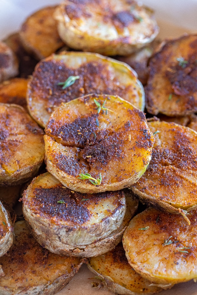 These Roasted Blackened Potatoes are a fun new way to enjoy a favorite root veggie. They’re coated in blackening spices, making these potatoes super flavorful and perfect for a dinner side dish.