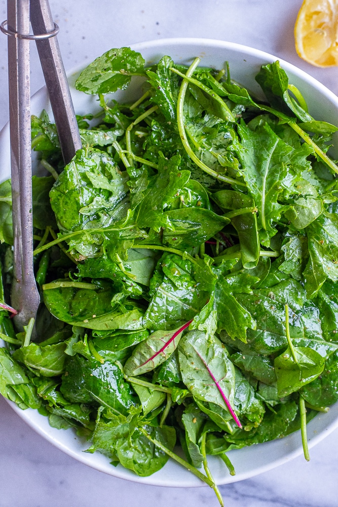 Do you love the combination of beans and greens? If so, you have to make this quick-and-easy Beans and Greens Salad. Each serving is packed with about 14 grams of plant-based protein, and it’s great for a side dish or a flavorful vegan lunch. Pair with rice or quinoa to make it feel more like a full meal. This salad is great for meal prep and tastes better as it sits!