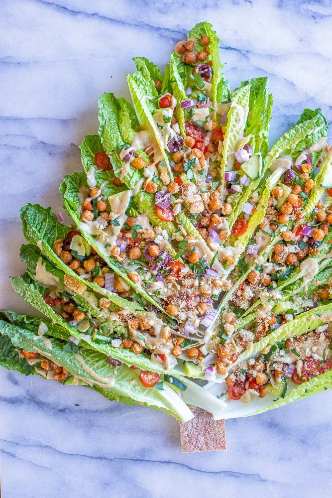 This Romaine Lettuce Greek Salad Christmas Tree is a festive way to serve a delicious Greek Salad at your holiday table this year!