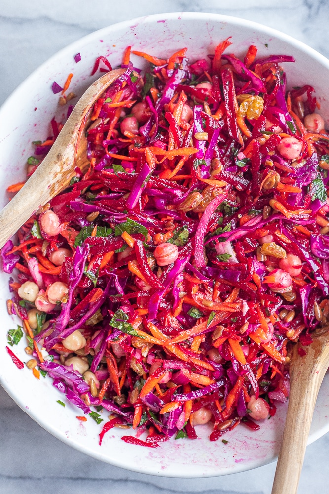 This Beet and Carrot Salad with Chickpeas is packed with color, flavor, and healthy ingredients. The vegetables add many vitamins and nutrients, and the chickpeas provide protein. Enjoy this vibrant veggie salad as a side dish or serve with quinoa for a filling lunch or dinner.