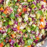 This Asian Inspired Chopped Cabbage Salad is packed with tons of vegetables and protein from the chickpeas and edamame. It keeps well in the refrigerator, so it’s great for meal prep lunches, but can also be enjoyed as a potluck side dish!