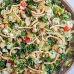 - Can store-bought dressing be used? Yes, you can definitely make this salad a bit easier by using store-bought dressing. I recommend an Asian-style dressing that’s either peanut- or oil-based.