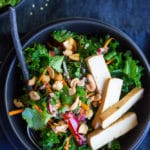Hi Friends! As I see my Pinterest and Facebook feeds overloaded with cookies, pies, and cakes, it makes me want to run and bury my face in a big bowl of salad! Don’t get me wrong, I do love my sweets, but I can only take so much before I need to get back to my savory favorites. Like salad. And this isn’t just your average salad; it’s a flavorful and filling Asian Kale Power Salad that’s perfect for making a batch and enjoying for lunch all week long. It’s one of those dishes that only gets better as it sits.
