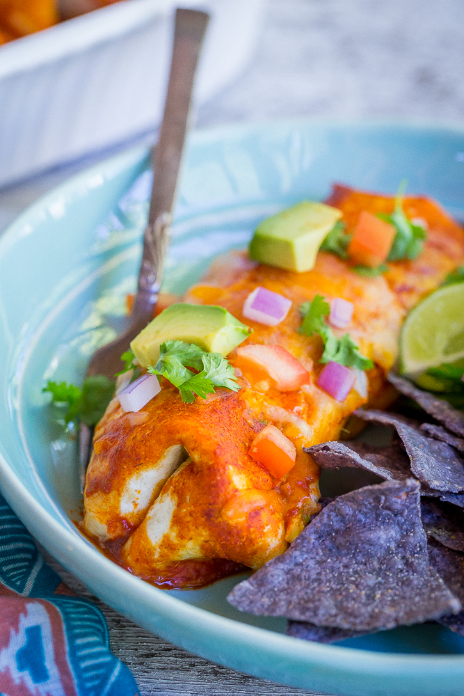 These enchilada burritos look so satisfying! And I’m right there with you on the batch cooking. My single readers probably hate me because I always have at least 4 servings with every recipe. It saves so much time!