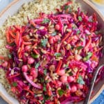 - It’s vibrant in color – Beets are known for their vibrant color, and I find it feels really good to eat colorful fruits and veggies. They tend to be higher in anti-oxidants, which can help lower inflammation levels inside of your body. The carrots, cabbage, and red onion all complement the beet color well.