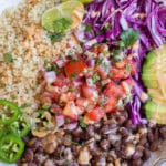 - Optional Toppings – I like to top my black bean bowls with avocado, crunchy cabbage, pico de Gallo or salsa, fresh lime juice, and cilantro. You could use hot sauce, shredded cheese, sour cream, guacamole, or corn salsa, too. Tortilla chips are also a great addition to these bowls.