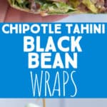 These Black Bean Wraps are easy to make and great for weekday lunches. The beans are spiced perfectly and the chipotle tahini sauce adds lots of depth of flavor. Serve with a side of chips or fries for a complete meal. These vegan black bean wraps will become your new go to lunch recipe!