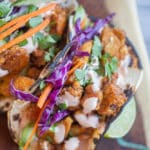 - They’re packed with plant-based protein – The tofu in these vegan/vegetarian tacos provides protein, which will fill you right up.