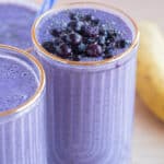 These Wild Blueberry Banana Smoothies are packed with antioxidants, making them a great way to start the day. Frozen wild blueberries give these smoothies so much flavor and a gorgeous purple color. These healthy smoothies can be thrown together in about 10 minutes and easily taken on the go.