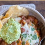 This Cheesy Green Chile Pinto Bean recipe is cozy and flavorful. This delicious bean dish is a great one-pan vegetarian meal that can be enjoyed as a side or main course, with chips or corn tortillas and your favorite toppings. Each serving boasts 26 grams of protein, so you’ll feel satisfied for hours after eating.