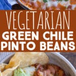 - Versatile – I love having these green chile pinto beans on hand because they can be used in many different ways. I like to serve them as a side dish or enjoy them as a main with tortilla chips or corn tortillas. Add your favorite toppings or roll this filling into a burrito with some added rice.