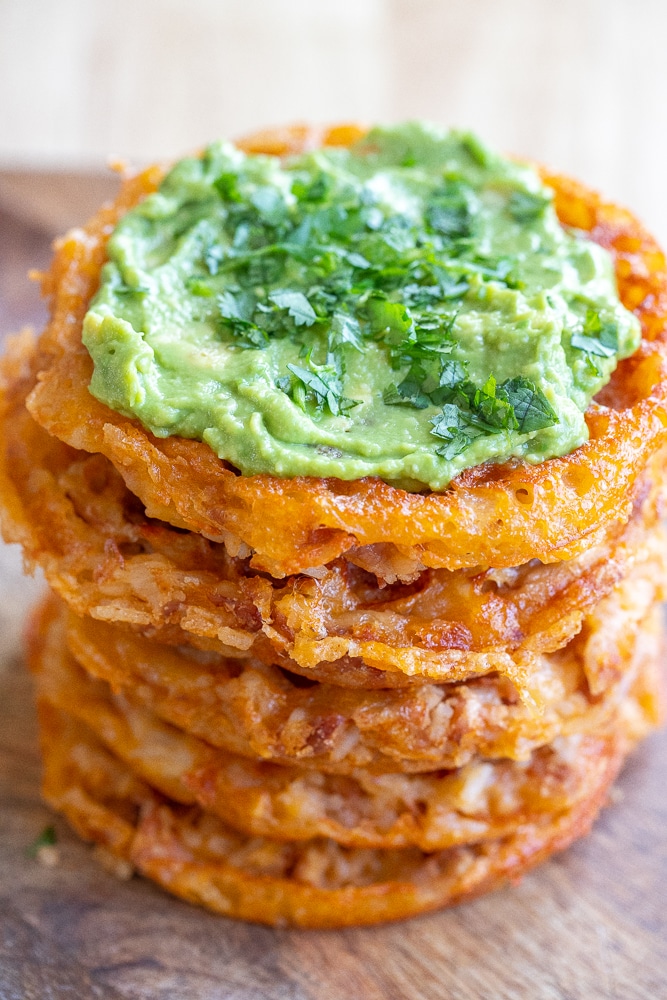- Cheese – I love buying blocks of cheese and grating my own for recipes, but I’ve found that pre-shredded cheese works best when using a waffle maker. Freshly grated cheese can get liquidy when melted and doesn’t hold its shape in the waffle maker. You certainly can use fresh cheese; it just may take a little longer for it to get crispy.