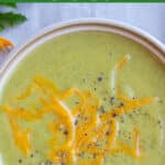 This Cheesy Zucchini Soup is the perfect way to use up your extra zucchinis! It’s easy to make, super cozy and it is packed with vegetables and protein. Make a double batch and freeze the rest for later. This veggie packed soup is great for lunch or dinner and can be enjoyed with crackers or crusty bread.