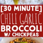 This Chili Garlic Broccoli with Chickpeas is an easy and flavorful 30 minute meal. The chili garlic sauce comes together quickly but has a huge depth of flavor and you can even use a bag of frozen broccoli to make things even easier. This chili garlic broccoli stir fry is perfect for a healthy and delicious vegan weeknight dinner.