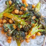 This Chili-Garlic Broccoli with Chickpeas is an easy and flavorful 30-minute meal. The chili-garlic sauce comes together quickly but has a huge depth of flavor, and you can even use a bag of frozen broccoli to make things easier. This chili-garlic broccoli stir-fry is perfect for a healthy and delicious vegan weeknight dinner.