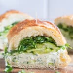 These Cream Cheese and Cucumber Sandwiches are easy to make and so refreshing. My cucumber sandwiches are a little less dainty than the original version, but they’re so much heartier and packed with fresh flavors. The cucumbers have a nice vinegary bite, and the microgreens add healthy nutrients. Serve these vegetarian sandwiches with chips and fruit and enjoy for lunch or dinner. I hope you enjoy these loaded vegetarian sandwiches as much as I do!