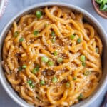 - Noodles can be garnished with sliced scallions and toasted sesame seeds, if desired. Allow noodles to cool for a few minutes before enjoying.