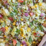 This Creamy Southwestern Chopped Cabbage Salad is creamy, crunchy and so flavorful! The dressing is made with lots of cilantro, lime juice and avocado and goes perfectly with all the fresh veggies. Enjoy as a side salad, light lunch or a dip for tortilla chips!