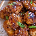 This crispy teriyaki cauliflower is a veganized version of teriyaki chicken and I wouldn’t be surprised if you were able to trick some people into thinking it was real chicken! My kids call it chicken and have no idea it’s actually cauliflower 😉