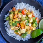 Another thing I love about this Coconut Curry Recipe is that it doubles as a meal-prep lunch recipe! You can either make it entirely for meal prep, it makes 4 good sized portions, or you can make it for dinner and take the leftovers for lunches. A few people from the challenge said that it tasted even better the next day for lunch 🙂