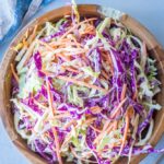 In my opinion, the most important part of the homemade coleslaw recipe is the dressing. The flavor of the dressing can basically make or break the coleslaw. I’m not vegan, but I prefer vegan mayo to regular, so that’s what I have on hand and use in my coleslaw. If you’re trying out a new mayo, you’ll want to taste it before using it because I’ve found some can taste a little strange, and then your entire coleslaw tastes strange.