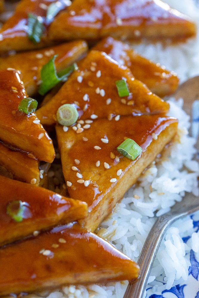 - Versatile – I love this teriyaki tofu recipe because it can be served a few different ways. I enjoy it best with rice or noodles and a generous side of vegetables. It can also be eaten as an afternoon snack and added to wraps or salads.