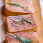 This Garlic Butter Herb Tofu is marinated with smoky flavors, seared on the outside until crispy and then cooked with butter, garlic, rosemary, thyme and sage. It’s packed with flavor and inspired by the classic garlic and butter steak dish. This delicious tofu recipe is fancy enough for a special occasion, but easy enough for a weeknight dinner. Serve with mashed potatoes and veggies for a full meal.