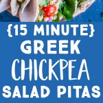 These Greek Chickpea Salad Pitas are a delicious and healthy no-cook summer meal that comes together in just 15 minutes. They’re so easy to make and great for lunch or dinner.