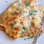Do you love fresh green chile? If so, you’re going to love these Cheesy Green Chile and Potato Enchiladas! These vegetarian enchiladas are the perfect meal to warm you up this winter. They’re made with both chopped green chile as well as green chile enchilada sauce. The potatoes are seasoned perfectly and add so much flavor to this easy weeknight dinner!