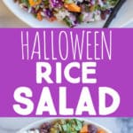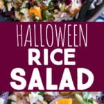 - It’s great as a side dish but filling enough for lunch – This rice salad can be brought to a Halloween party and served potluck style, or it can be meal-prepped on Sunday and enjoyed for lunch throughout the week.