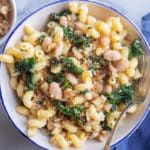 It’s been cold and rainy here today, and I’ve been craving a big bowl of cozy pasta. This Kale and White Bean Pasta with Parmesan is not only cozy but it’s also loaded with veggies and protein, making it a super satisfying meal.