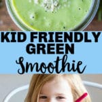 This Kid Friendly Green Smoothie Recipe is easy to make and a great way to add greens into your kid’s diets!