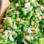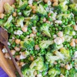 This Lemony Broccoli Salad is packed with chickpeas, feta cheese, and sweet peas. It’s full of protein, easy to make, and great for a healthy side dish or light lunch.