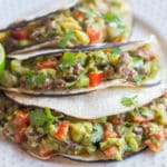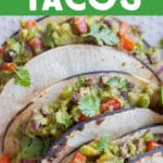 These Loaded Guacamole Tacos are a fun and delicious no cook recipe that can be enjoyed all summer long! Use mini tortillas to make these into cute little appetizers, or regular sized for an easy lunch or dinner. Serve with beans, rice and chips for a full meal.