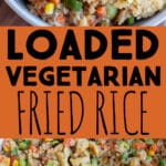 My Loaded Vegetarian Fried Rice recipe is easy enough to make as a side dish, but also hearty enough to enjoy for a full meal. I love making a big batch of this veggie- and protein-filled rice, and then packing it into meal-prep containers for easy lunches all week long. It can also be served for dinner with a side of egg rolls or dumplings.