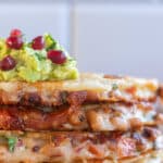 Whether you want to add a little extra luck to your new year or you want a tasty vegetarian quesadilla recipe, you’ve got to try my easy Black-Eyed Pea Quesadillas. They’re packed with fiber and protein, making them a filling meal that can be enjoyed for lunch or dinner. The tomato and lime juice add a refreshing bite that goes well with the melted cheese. Serve with your favorite toppings and a side of chips.