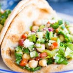 These Mediterranean Chopped Salad Pitas are full of fresh veggies and chickpeas! They’re super flavorful and perfect for lunch.