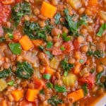 This Quick and Easy Vegetarian Lentil Soup recipe uses canned lentils, which cuts down on the cooking time so much! This soup is hearty and flavorful, but it is ready in half the time. This plant-based soup recipe is a protein-packed one-pot meal that can be prepped ahead of time and is freezer-friendly. Enjoy with lunch or dinner and serve with bread.