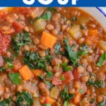 - It’s made with canned lentils – Using canned lentils for this soup recipe really cuts down on the cooking process and allows it to come together in about 30 minutes.