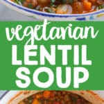 This Quick and Easy Vegetarian Lentil Soup recipe is made using canned lentils, which cuts down on the cooking time so much! This soup is still hearty and flavorful but it is ready in half the time. This plant based soup recipe is a protein packed one pot meal that can be prepped ahead of time and is freezer friendly. Enjoy with lunch or dinner and serve with bread.
