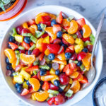 This Rainbow Fruit Salad is packed with tons of healthy fruit your kids will love! It’s great for breakfast, snacks, and even dessert. I love having it on hand all week for a healthy option.