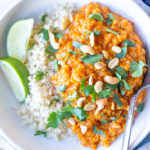 This Easy Red Lentil Curry is so healthy and flavorful! Enjoy for dinner or a meal prep lunch!