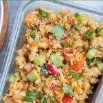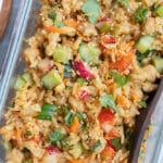 This Rice and Chickpea Salad with Peanut Sauce started out as a “clean out the fridge” meal, but turned out so good I had to share the recipe with you. This plant-based salad is loaded with protein and veggies and is perfect for a healthy lunch that will fill you up.
