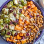- They’re easy to make – The sweet potato, Brussels sprouts, and chickpeas are all roasted together on one sheet pan, which makes everything so much easier!