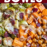 These Roasted Brussels Sprout Bowls with Creamy Honey Mustard are hearty, cozy, and filling. They’re packed with veggies and protein and perfect for dinner or a healthy meal-prep lunch. Serve with quinoa or another grain of choice, and top with crispy toasted pecans and dried cranberries.
