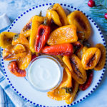 These Roasted Sweet Peppers are great as a last-minute holiday appetizer or a vegetable side dish on the Christmas dinner table. I paired them with a creamy goat cheese dip, and I think you will be pleasantly surprised by how delicious they are!