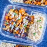 These Roasted Sweet Potato and Chickpea Meal Prep Bowls are perfect for a hearty and delicious vegan meal prep recipe!